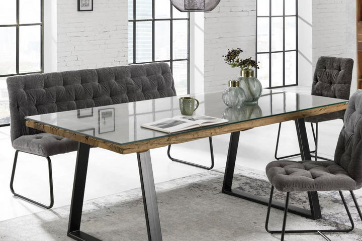 Ausnehmend nobel passt ein Esstisch mit Glas-Platte in die heutige Zeit. Vor allem aussergewöhnliche Gestelle aus Edelstahl und Aluminium kommen mit einer gläsernen Fläche zum Servieren hervorragend zur Geltung. Dabei muss die Oberfläche nicht immer durchsichtig sein – dezent satiniert und in Weiss oder Schwarz lackiert, macht das cleane Material gleichfalls einen glänzenden Eindruck. Schon gewusst? In vielen Fällen kommt sogenanntes Sicherheitsglas zum Einsatz, das sich unter anderem durch höhere Stossfestigkeit auszeichnet.