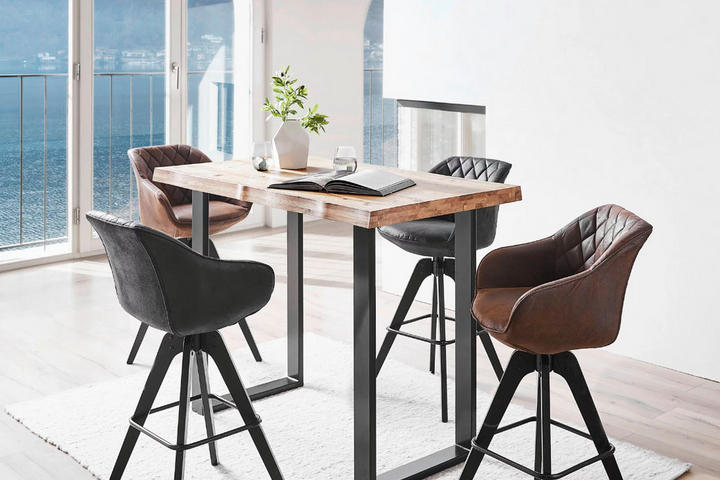 Die Höhe liegt für Esstische üblicherweise zwischen ca. 70 und 80 cm – falls man noch höher hinaus möchte, schaffen Barmöbel einen extravaganten Genussbereich. Um eine optimale Esszimmer-Ausstattung zu gestalten, kommt es vor allem darauf an, die unterschiedlichen Möbel präzise aufeinander abzustimmen. So sollte der Abstand zwischen der Tischplatte und der Sitzfläche von Stühlen oder Bänken ca. 30 cm betragen. Hinweis: Ist der Esstisch ausziehbar, haben temporär hinzugestellte Klappstühle im Idealfall eine ähnliche Sitzhöhe wie das reguläre Inventar.