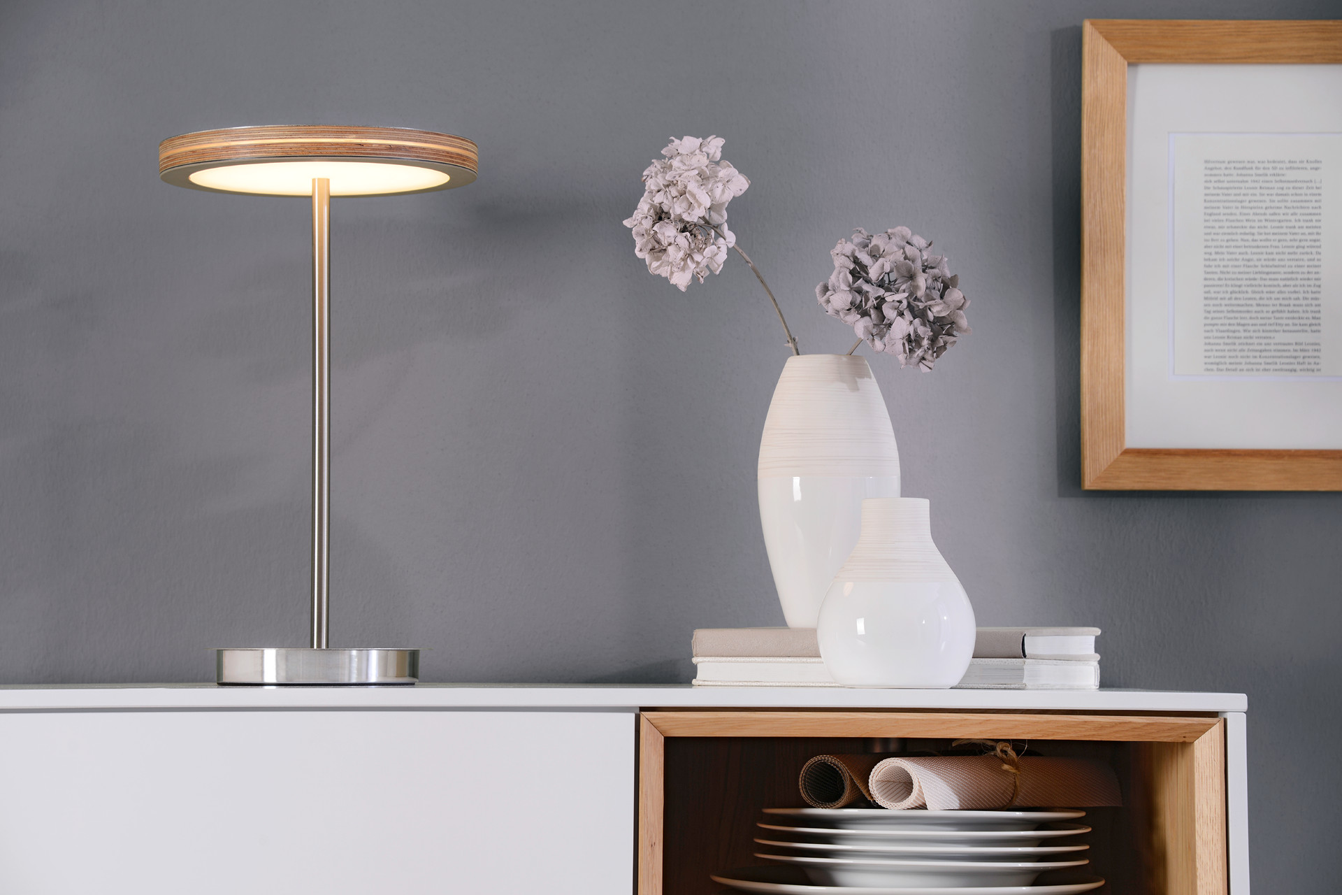 - Modern: Was halten Sie von einer schlanken Tischleuchte mit mattvernickelter Metalloberfläche? Dank futuristischer Optik setzen moderne Leuchten auch in markanten Tönen wie Schwarz oder Anthrazit einen hübschen Akzent, etwa auf einem massiven Holztisch.