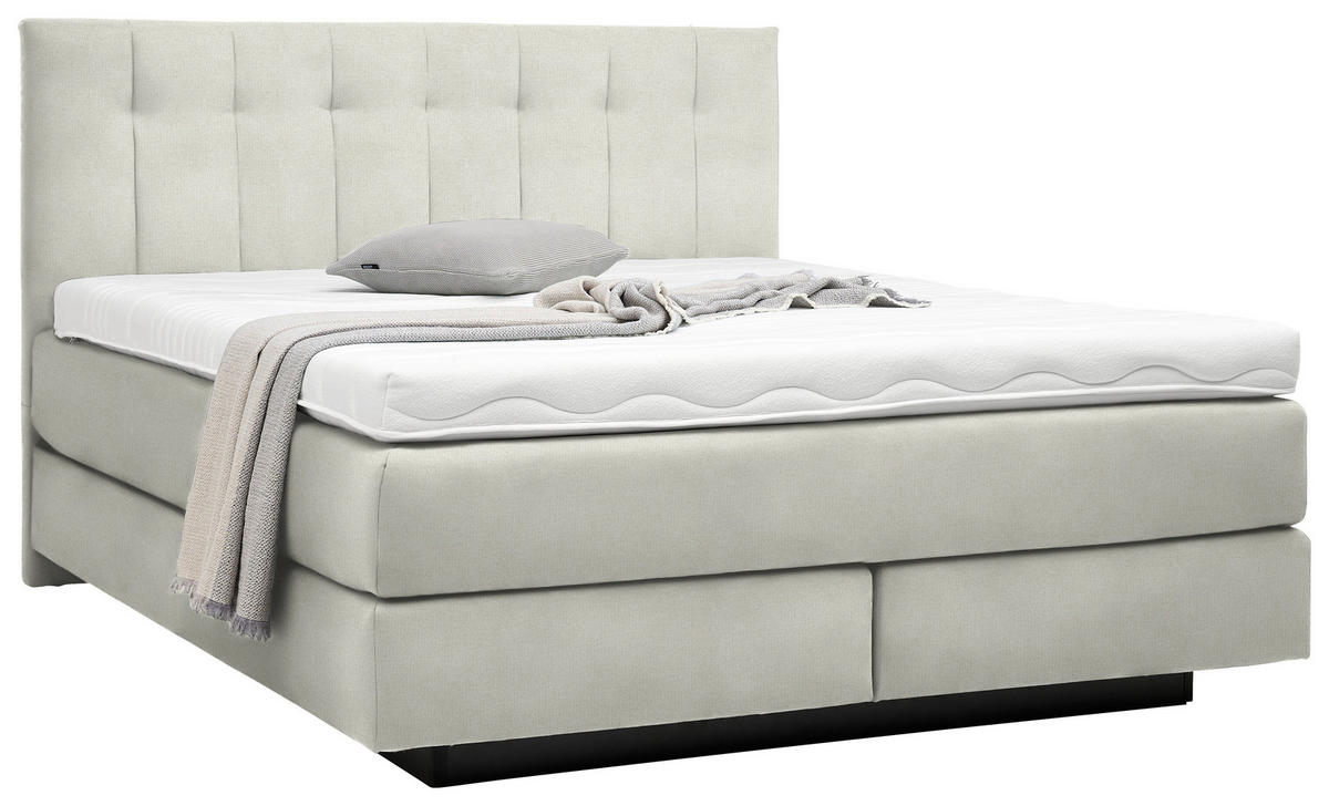 Schwarz. Entdecken Sie dieses Boxspringbett (ca. 160 x 200 cm) in Naturfarben mit Matratze, Topper und gepolstertem Kopfteil, das noch viel mehr kann, als gut auszusehen!
