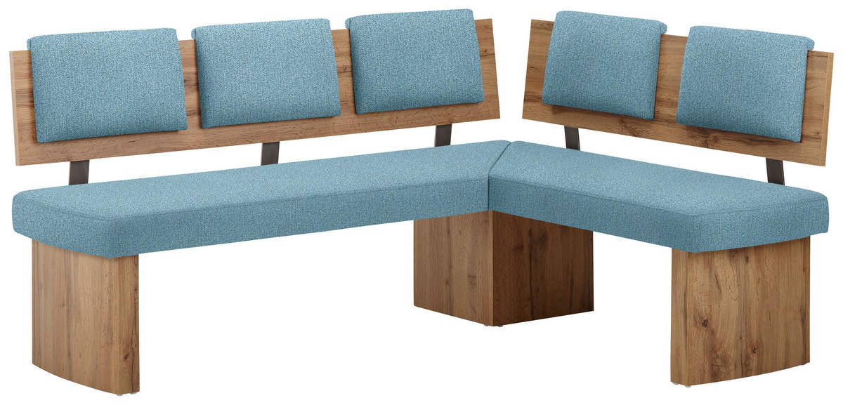 ECKBANK Textil, Holzwerkstoff Eichefarben, Hellblau