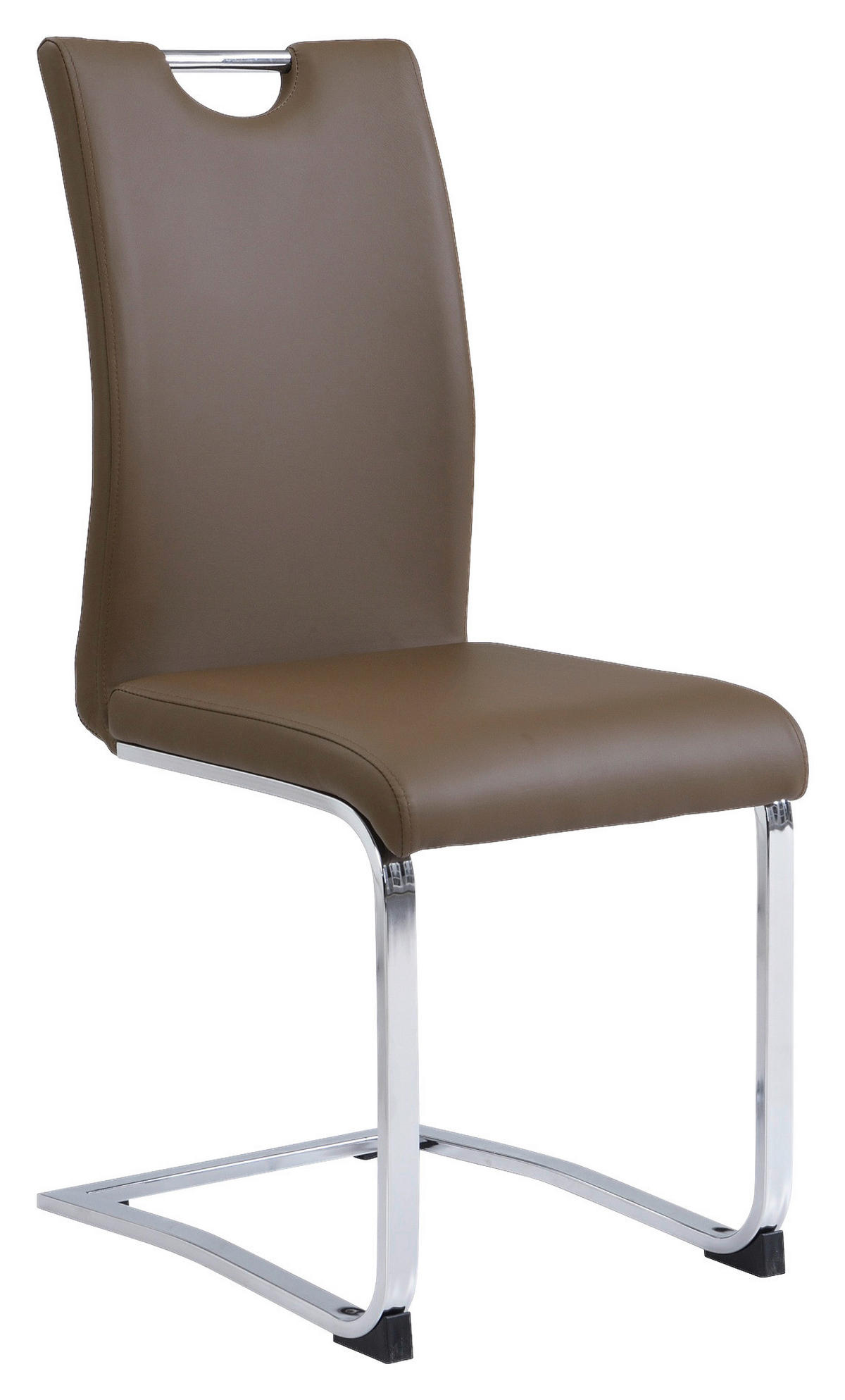 Dieser Stuhl ist eine schöne und moderne Sitzgelegenheit für Sie und Ihre Gäste. Der hochwertige Bezug im braunen Lederlook verleiht dem Möbel ein elegantes Äußeres. Die chromfarbenen Beine machen den Stuhl zu einem echten Hingucker. Ob am Esstisch oder beim Fernsehabend, dieser Stuhl macht eine tolle Figur!