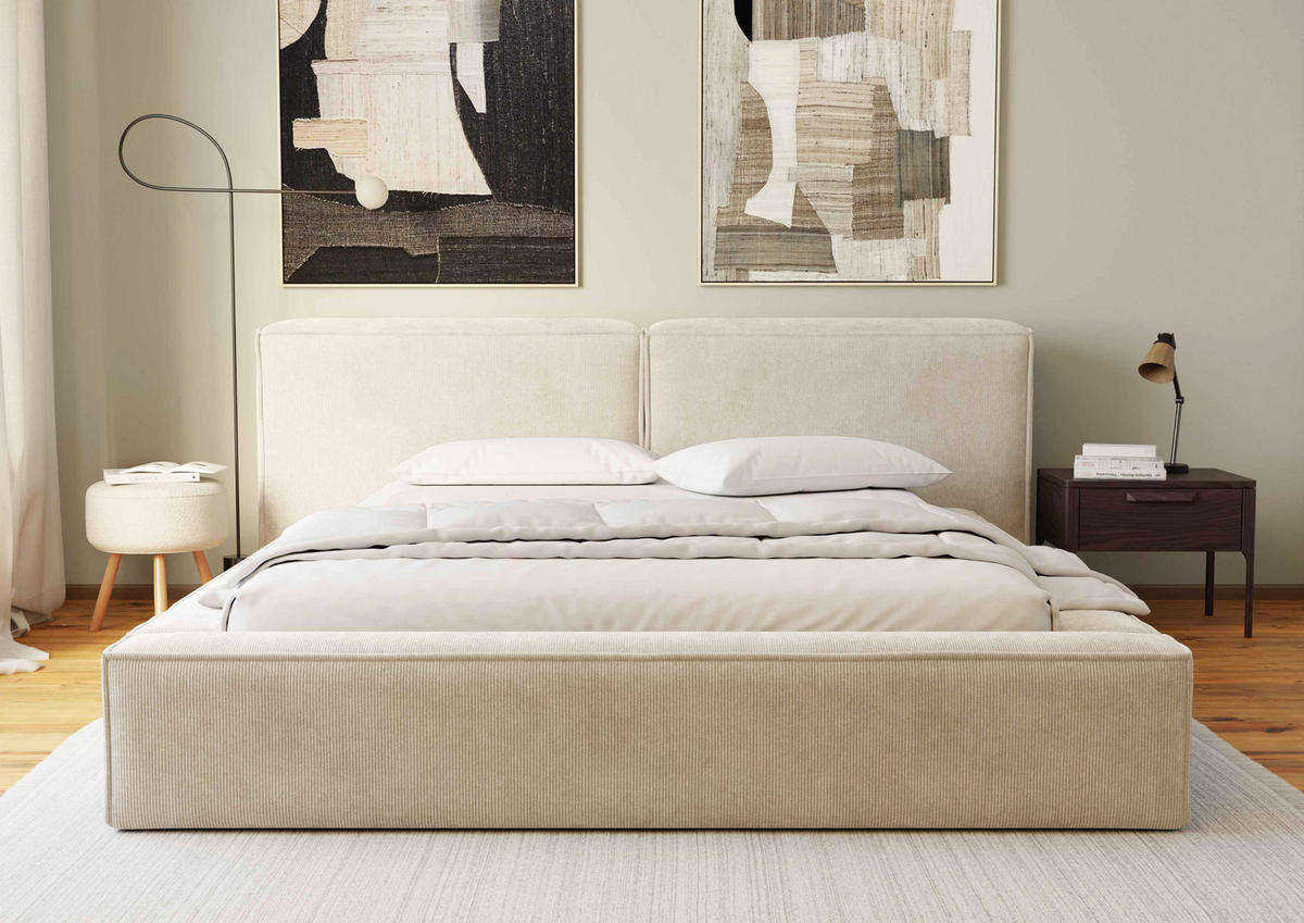 Mit diesem BOXXX Polsterbett in Beige legen Sie die Basis für erholsamen Schlaf.