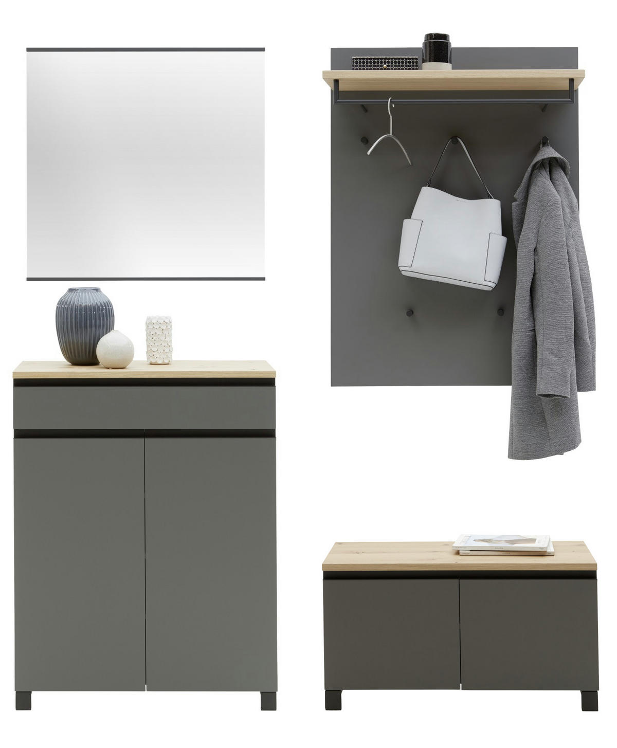 GARDEROBE 4-teilig 180/193/40 cm Anthrazit, Grau, EichefarbenBalkeneicheBreite/Höhe/Tiefe: 180/193/40 cmCHF 1’449.‒