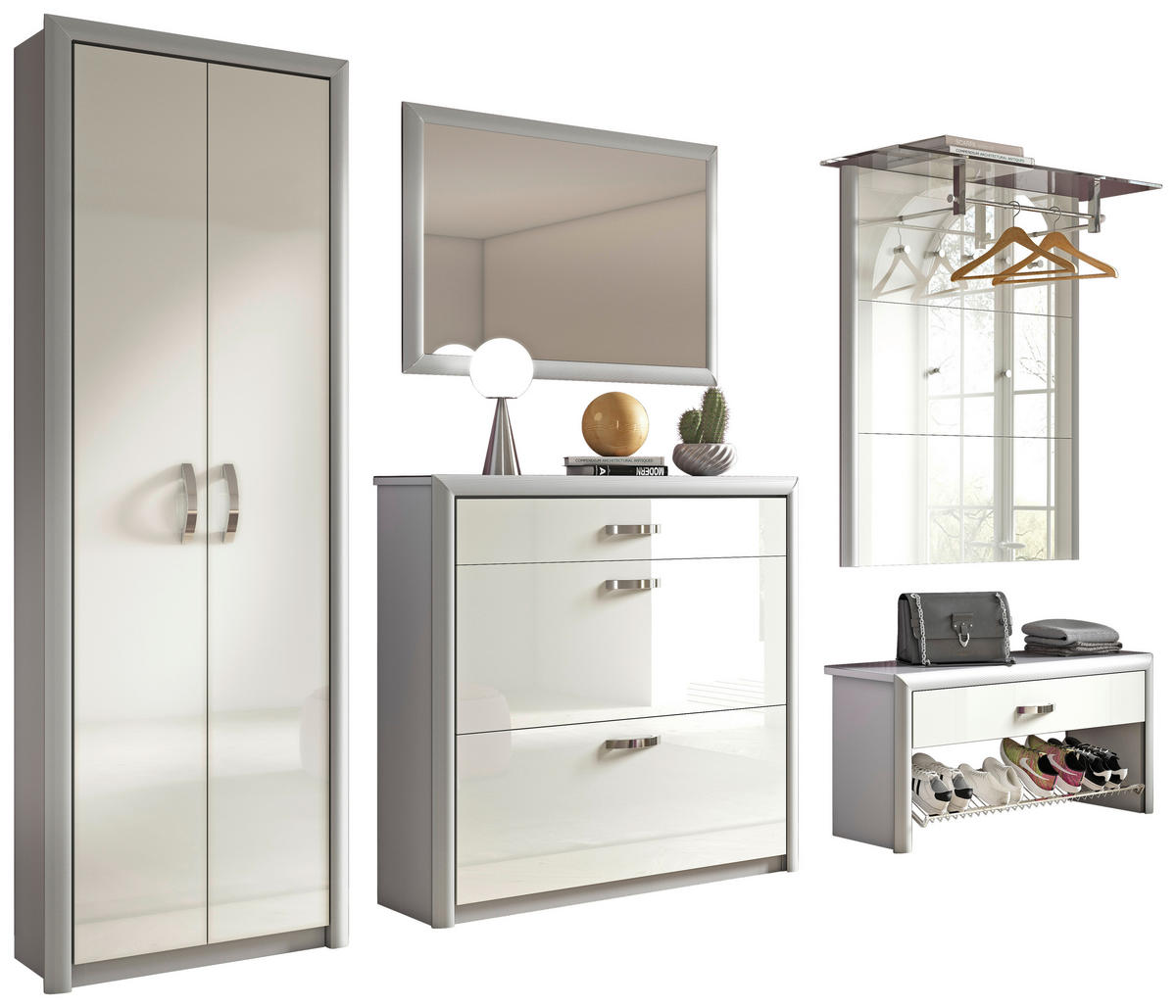 GARDEROBE 5-teilig 320/195/36 cm  - Weiss/Alufarben, Design, Glas/Holzwerkstoff (320/195/36cm) - Dieter KnollDieter Knoll