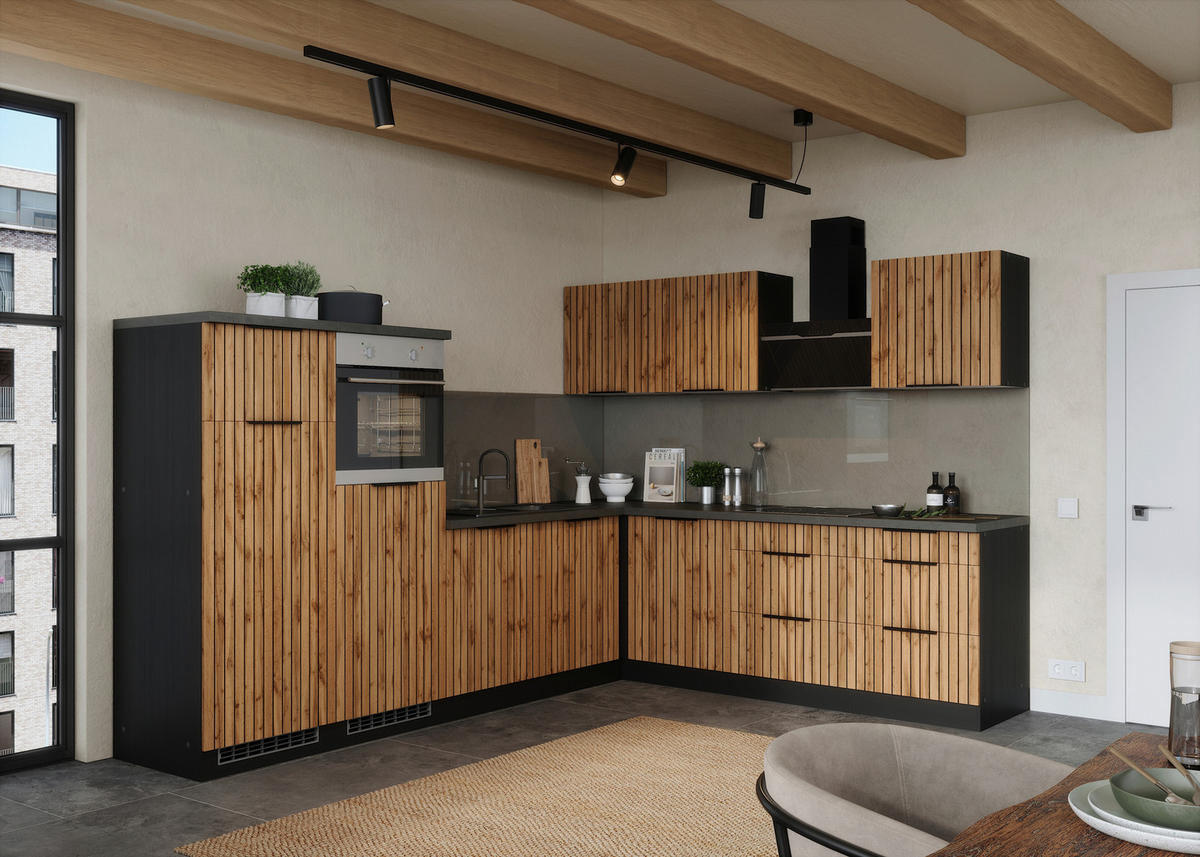 Held ECKKÜCHE 300/240 cm Graphitfarben, Eiche Wotan