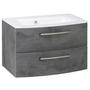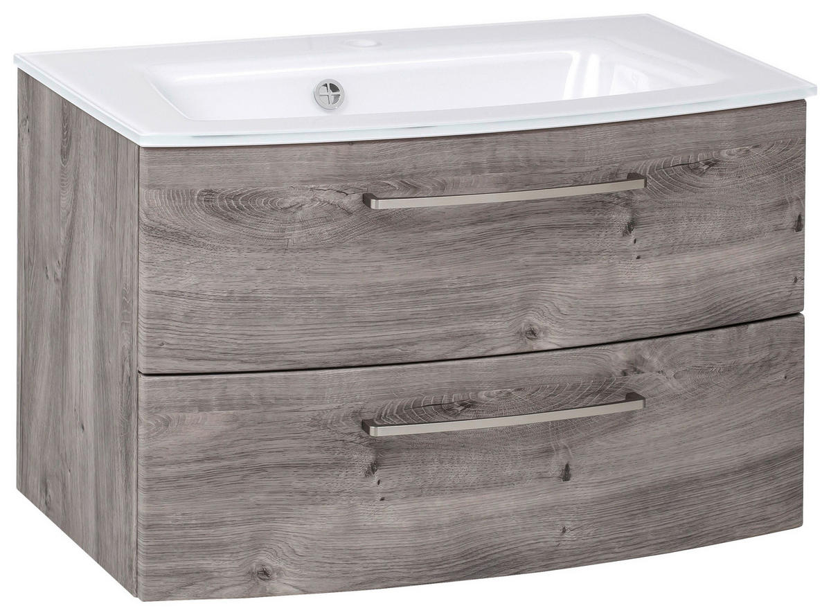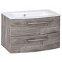 Waschtischkombi in Eichefarben und Weiß mit 2 Schubladen fürs stilvolle Bad
