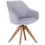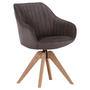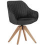 Der Bezug in Anthrazit ist an den Innenseiten der Arm- und Rückenlehne mit parallelen Steppungen verziert. Das pflegeleichte Flachgewebe wurde aus 100 % Polyester gefertigt. Den natürlichen Kontrast bildet das Gestell aus massivem Eichenholz. Dank einer drehbaren Sitzfläche, macht das Polstermöbel rundum eine gute Figur. Dieser Sessel erfindet traditionelles Möbeldesign neu!