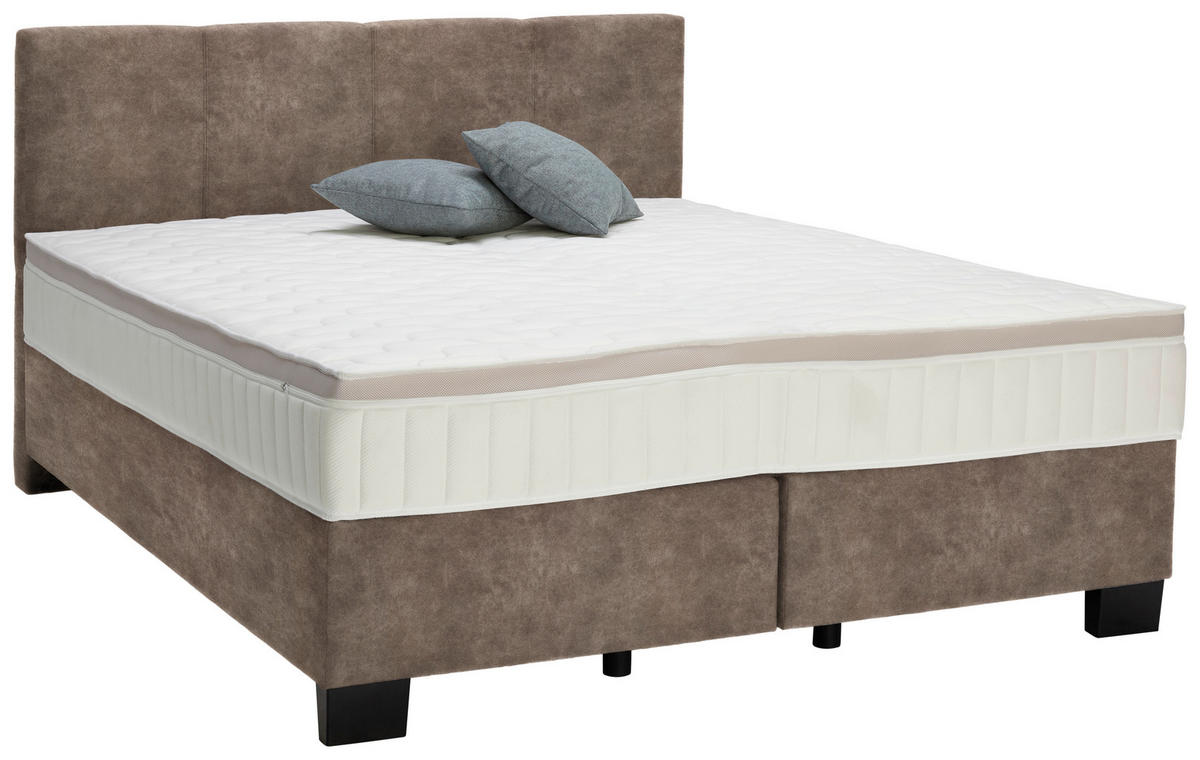 Schwarz. Stellen Sie mit diesem Boxspringbett (ca. 200 x 200 cm) in Taupe inklusive Matratze, Topper und gepolstertem Kopfteil die Weichen auf Behaglichkeit!