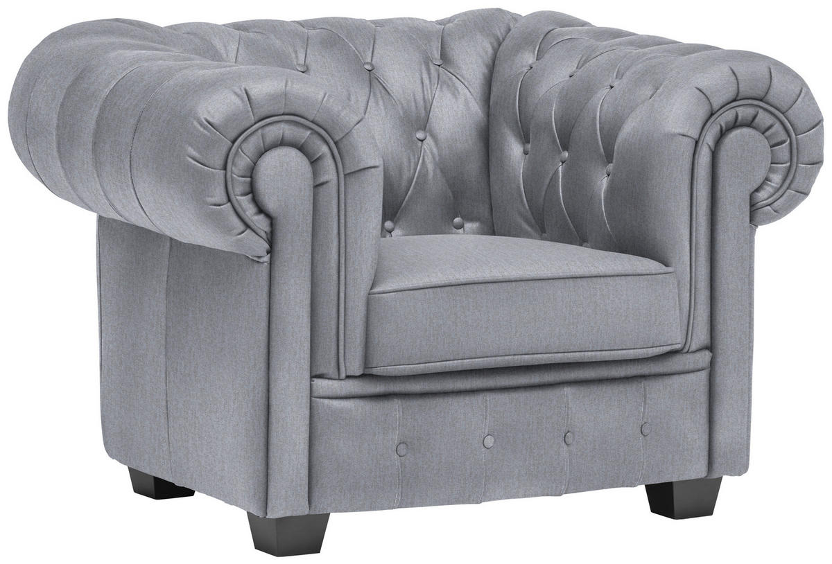 Grossartiges Design Mit dem subtilen Kolorit in Hellgrau bietet das Polstermöbel eine ansprechende Aufmachung, die sich schick in unterschiedliche Einrichtungskonzepte einfügt. Stimmige Akzente setzen dazu die eckigen Füsse aus lackierter Kiefer in Wengefarben. Ihr hellgrauer Chesterfield-Sessel mit Webstoff-Bezug verführt dazu, behaglich die verdiente Me-Time zu geniessen! Informationen zu separat bestellbarem Equipment oder weiteren verfügbaren Varianten finden Sie in den Produktdetails unter "Produktvorteile/Besonderheiten". Gerne können Sie sich diesbezüglich auch über das