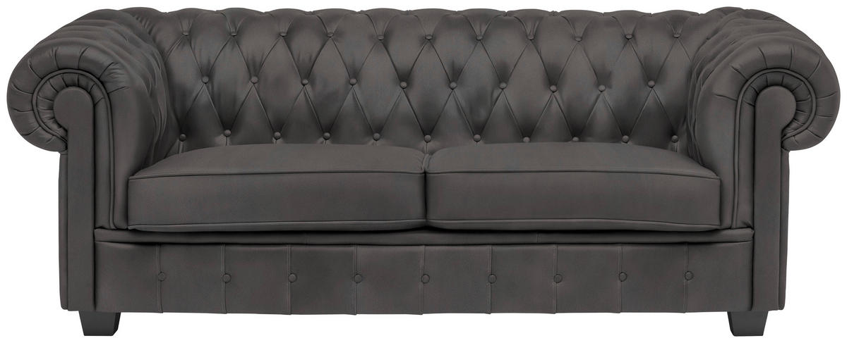 Im Lieferumfang enthalten: Können Sie sich etwas Besseres vorstellen als auf diesem dunkelgrauen Chesterfield-Sofa mit Lederlook-Bezug alles um sich herum zu vergessen? Informationen zu separat bestellbarem Equipment oder weiteren verfügbaren Varianten finden Sie in den Produktdetails unter "Produktvorteile/Besonderheiten". Gerne können Sie sich diesbezüglich auch über das