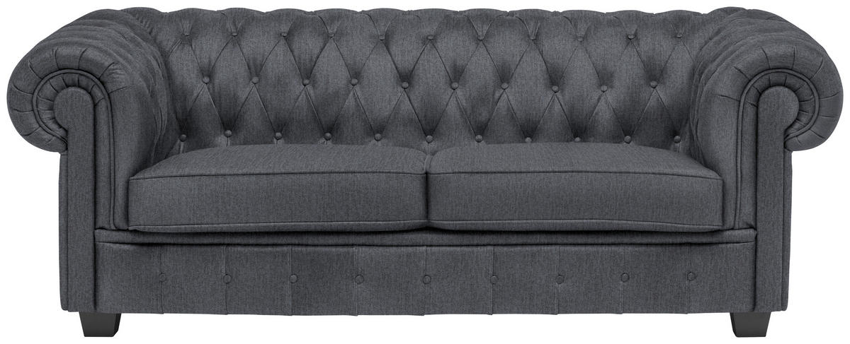 Im Lieferumfang enthalten: Daheim ist, wo dieses graue Chesterfield-Sofa mit Webstoff-Bezug ist! Informationen zu separat bestellbarem Equipment oder weiteren verfügbaren Varianten finden Sie in den Produktdetails unter "Produktvorteile/Besonderheiten". Gerne können Sie sich diesbezüglich auch über das
