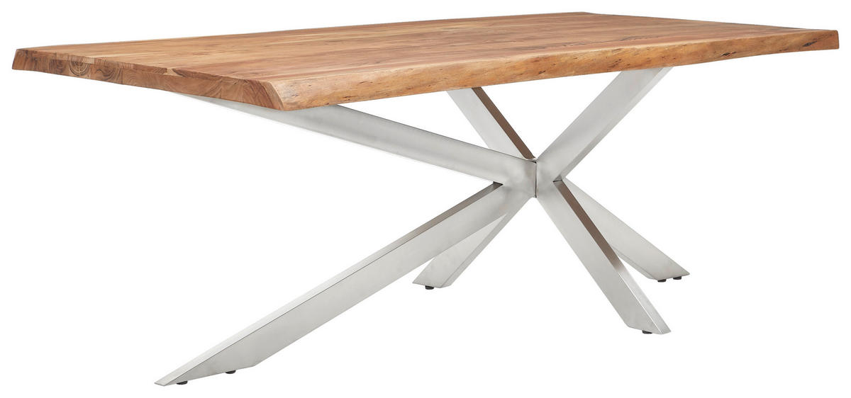 Landscape ESSTISCH 200/100/76 cm Echtholz Holz, Metall rechteckig Akaziefarben, Edelstahlfarben
