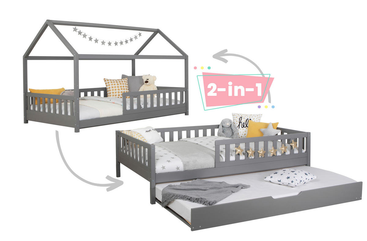 Hausbett ca. 100 x 200 cm (B x L) in Hellgrau mit Zusatzbett: Traumheim!