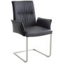 Dieser NOVEL Armlehnstuhl in Schwarz mit Leder begeistert Ihre Gäste gleichzeitig mit Komfort und seinem ansprechenden Äusseren. Das Beingestell ist aus gebürstetem Edelstahl gefertigt und sorgt so nicht nur für eine Belastbarkeit von bis zu 140 kg, sondern versprüht ebenso ein edles Flair in Ihrem Zuhause. Dieses wird vom Bezug aus pigmentiertem Echtleder zusätzlich unterstrichen.