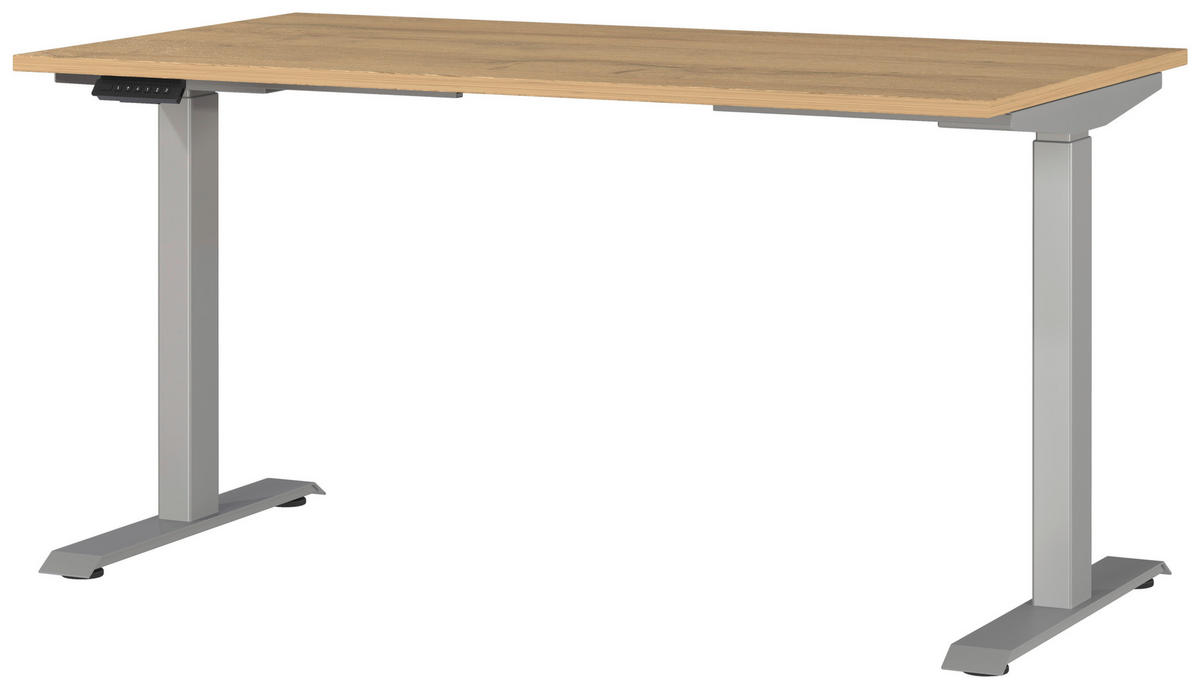Novel SCHREIBTISCH 140/80/72-118 cm Eichefarben, Silberfarben, Braun höhenverstellbar elektrisch höhenverstellbar