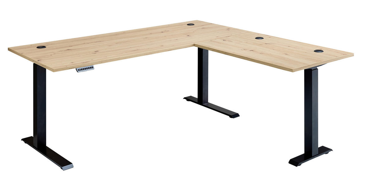 ECKSCHREIBTISCH 185/177/72 cm Schwarz, Eiche Artisan höhenverstellbar, Memoryschalter