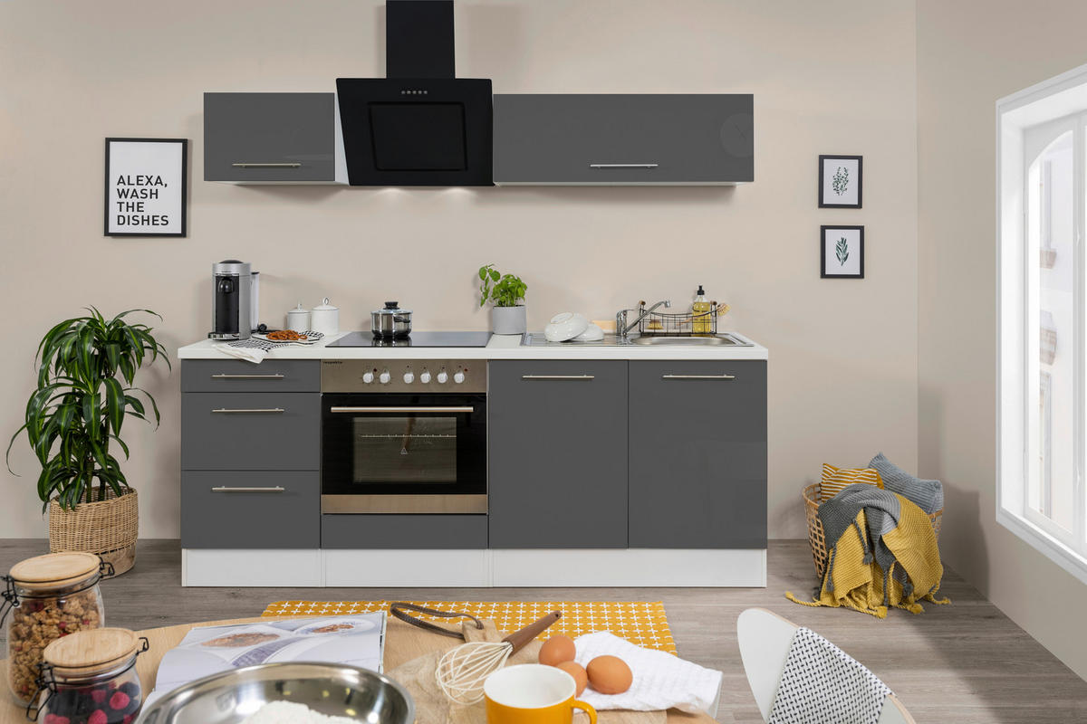 Respekta KÜCHENBLOCK 210 cm Grau, Schwarz, Weiss