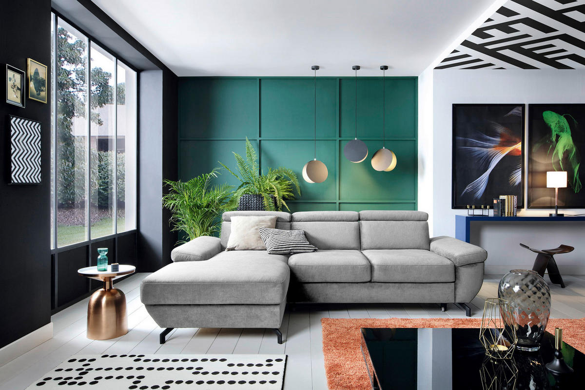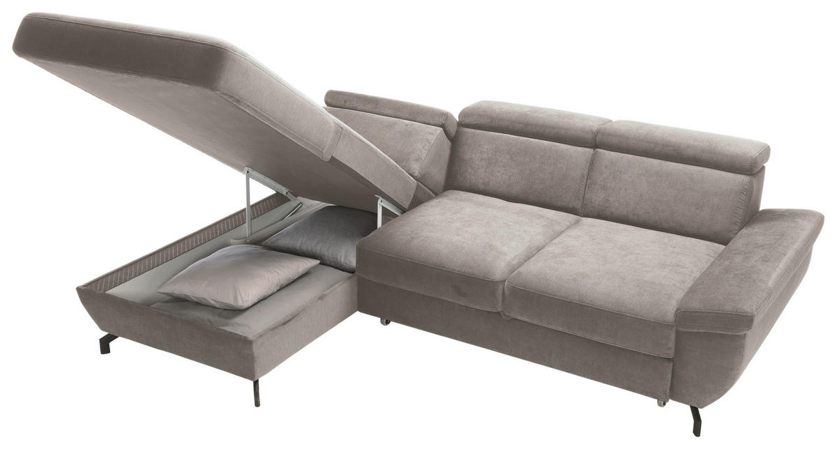 Trifft Ihren Geschmack: Ecksofa mit Velours-Bezug in Silberfarben