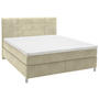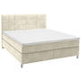 Chromfarben vervollständigen das Design stimmig. Starten Sie jeden Tag ausgeschlafen mit diesem Boxspringbett (ca. 200 x 200 cm) in Creme inklusive Matratze, Topper und gepolstertem Kopfteil!
