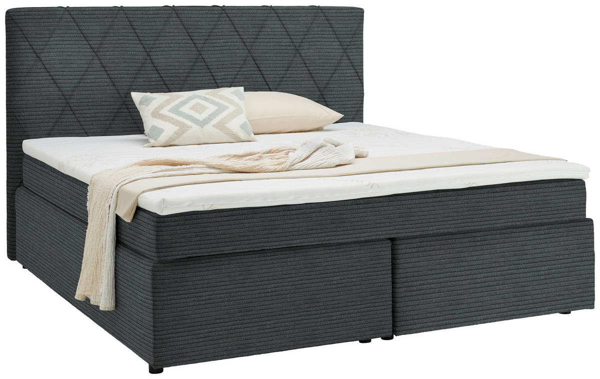 Cozy Vibes: Boxspringbett (160 x 200 cm) in Dunkelgrau mit Matratze