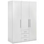 Dieser 3-türige Kleiderschrank in Weiß bietet Ihrer Garderobe den perfekten Aufbewahrungsort. Hinter 3 Türen mit Türdämpfung haben Sie auf insgesamt 4 verstellbaren Einlegeböden viel Platz für Shirts, Pullover und Hosen. An den 2 Kleiderstangen hängen Sie Kleider und Hemden knitterfrei auf. Für Unterwäsche und Socken ist auch bestens gesorgt: 3 Schubladen schenken Ihnen weiteren Stauraum. Das integrierte Soft-Close-System garantiert auch in stressigen Situationen ein stets leises und materialschonendes Öffnen und Schließen.