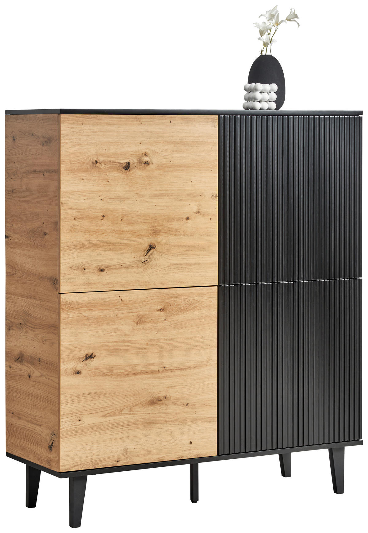 Highboard (modern) in Matt-Schwarz und Eichefarben: Eyecatcher mit Stauraum