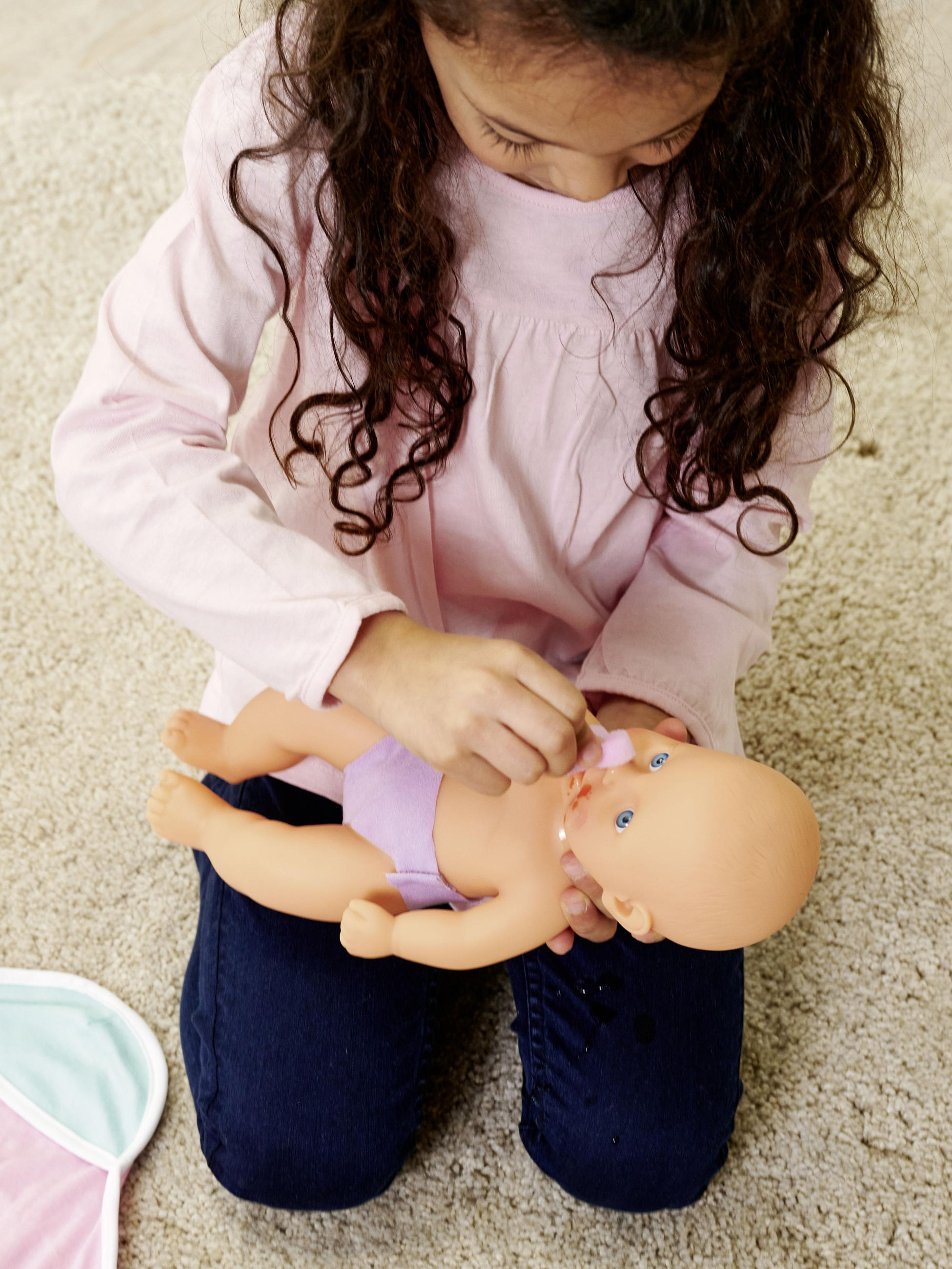 Auch Puppenzubehör wie Schnuller, Fläschchen, Strampler und Mützen dürfen natürlich nicht fehlen. Ebenso wichtig sind ein toller Puppenwagen oder die Puppenbadewanne, die im Set mit einem Töpfchen und anderen wichtigen Puppen-Utensilien für Freude sorgt. In den stabilen Puppenwagen kann natürlich auch das Lieblings-Kuscheltier Platz nehmen. Dabei sind bunte Buggys mit Motiven die Klassiker unter den Puppenwagen. Richtig exklusiv ist das Jogger-Modell, das eine Liege- und eine Sitzposition ermöglicht und sogar mit Einkaufsnetz und Fussdecke ausgestattet ist – so werden Puppen, Teddybären und Co. stilecht durch die Wohnung oder den Garten kutschiert.