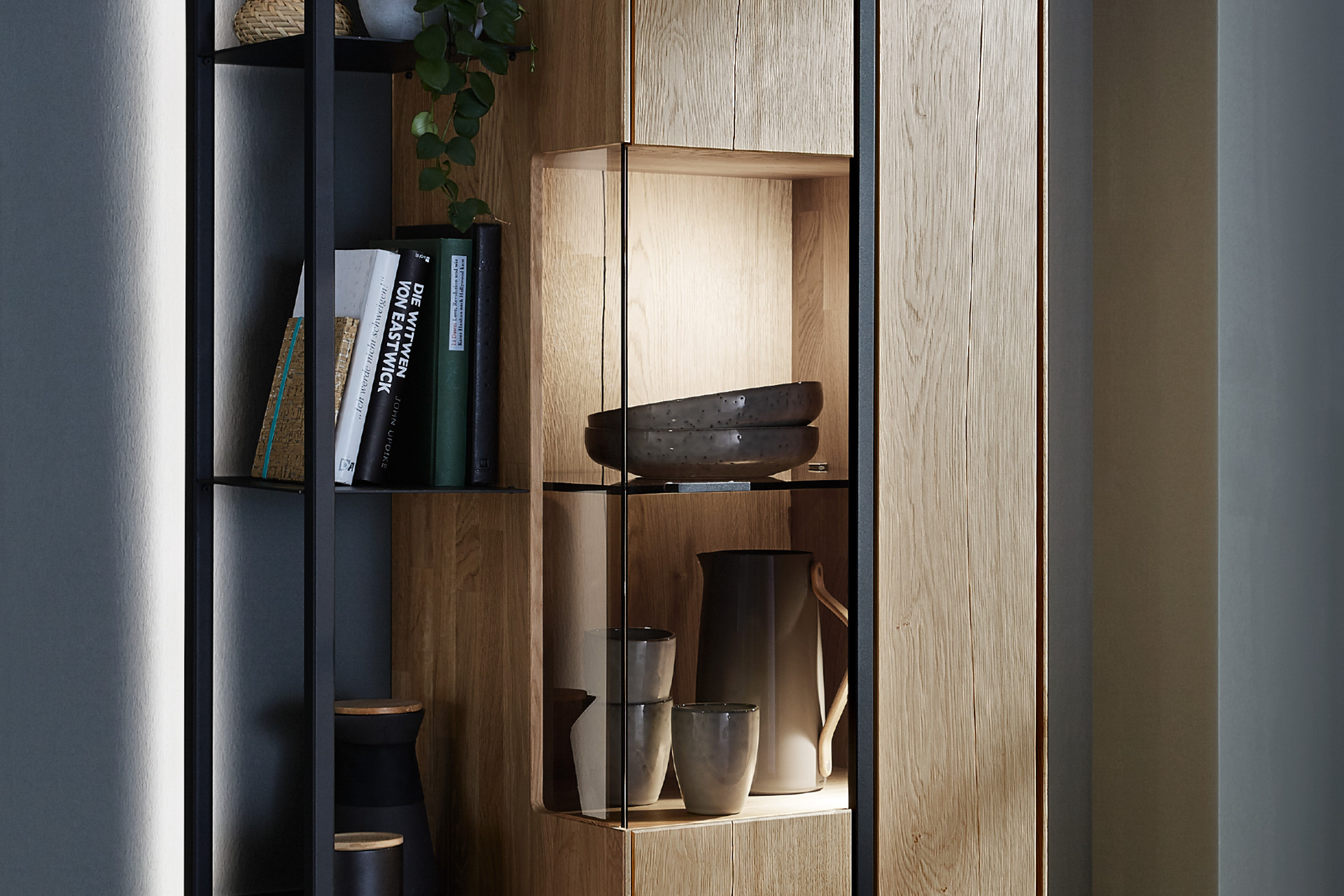 WOHNWAND Schwarz, Wildeiche 310/207/50 cm